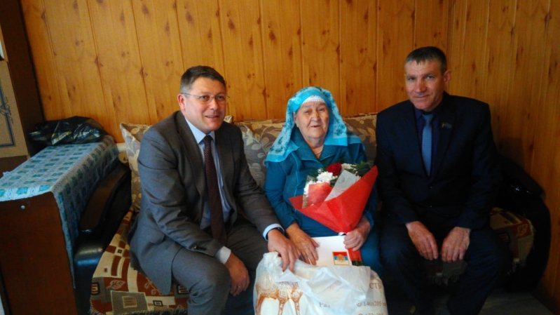 Сегодня поздравления с 90-летием принимала труженица тыла, ветеран труда, мать - героиня Самига Садриевна Шафигуллина из Нового Альметьева. Заместитель главы района Ильяс Ахметзянов вручил юбилярше персональное поздравление Президента России Владимира Путина, а также букет цветов и подарки от главы района Алмаза Ахметшина.
