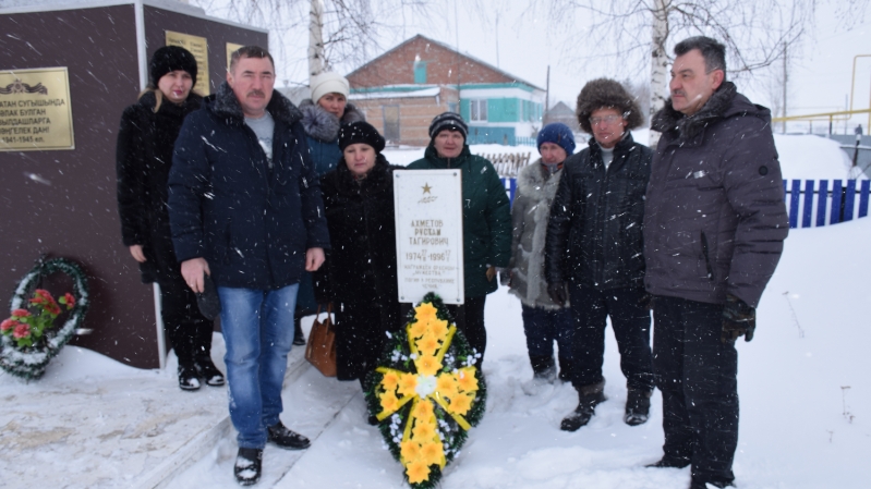 В Бикулове памятную доску Рустаму Ахметову, в 1996 году погибшему в Чечне, установили на территории памятника воинам-землякам, павшим в годы Великой Отечественной войны.