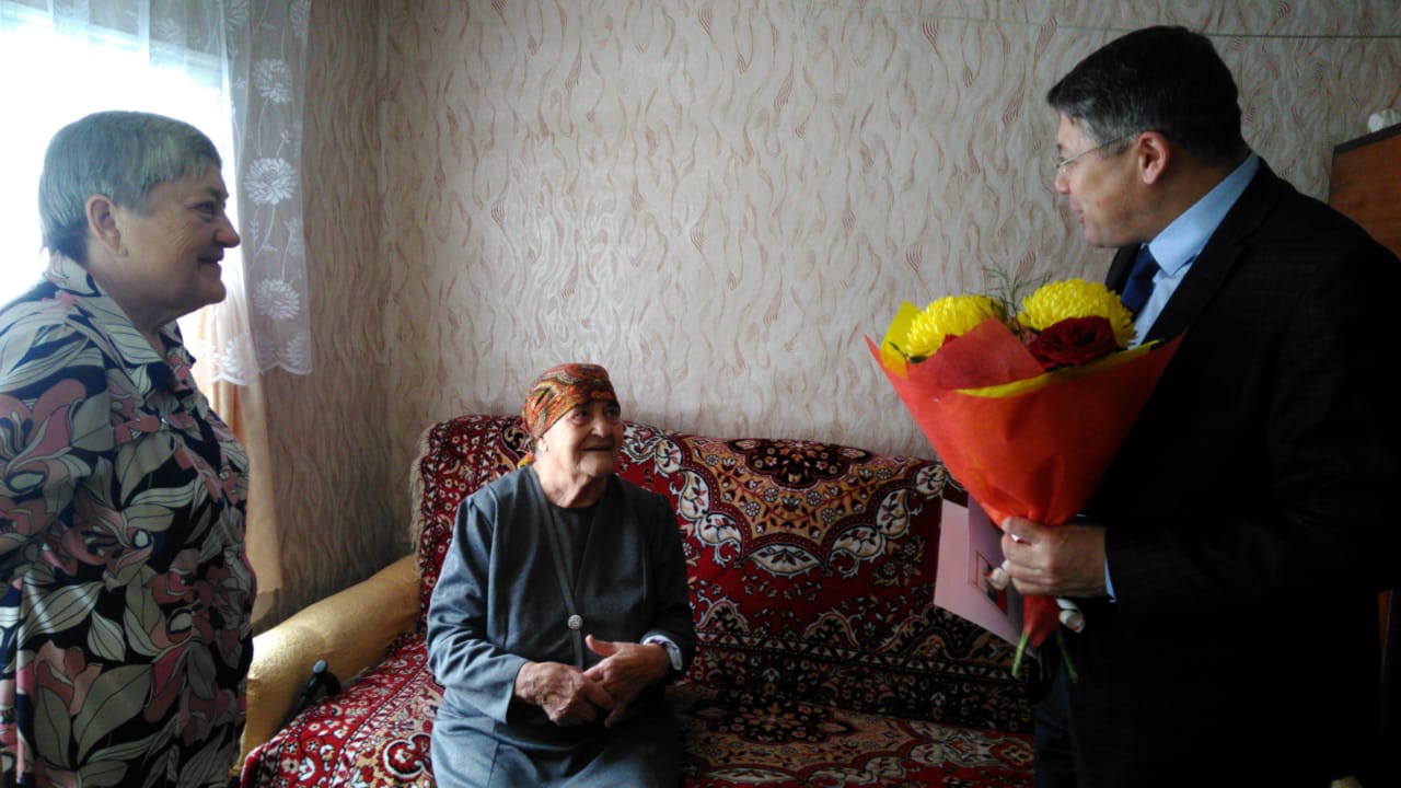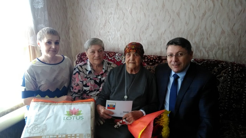 Поздравить Надежду Федоровну Салмину с таким прекрасным юбилеем приехал заместитель главы района Ильяс Ахметзянов. Заместитель главы района Надежде Федоровне вручил поздравительное письмо от Президента Российской Федерации Владимира Путина, подарок от главы района Алмаза Ахметшина. Пожелал юбилярше крепкого здоровья и долголетия.