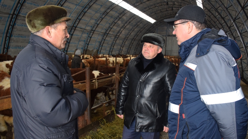 Глава района интересовался ходом зимовки скота, кормлением и содержанием животных, наличием и запасом кормов, сбалансированностью рациона животных. На встрече с фермером Алмаз Салимович высказал и свои пожелания.