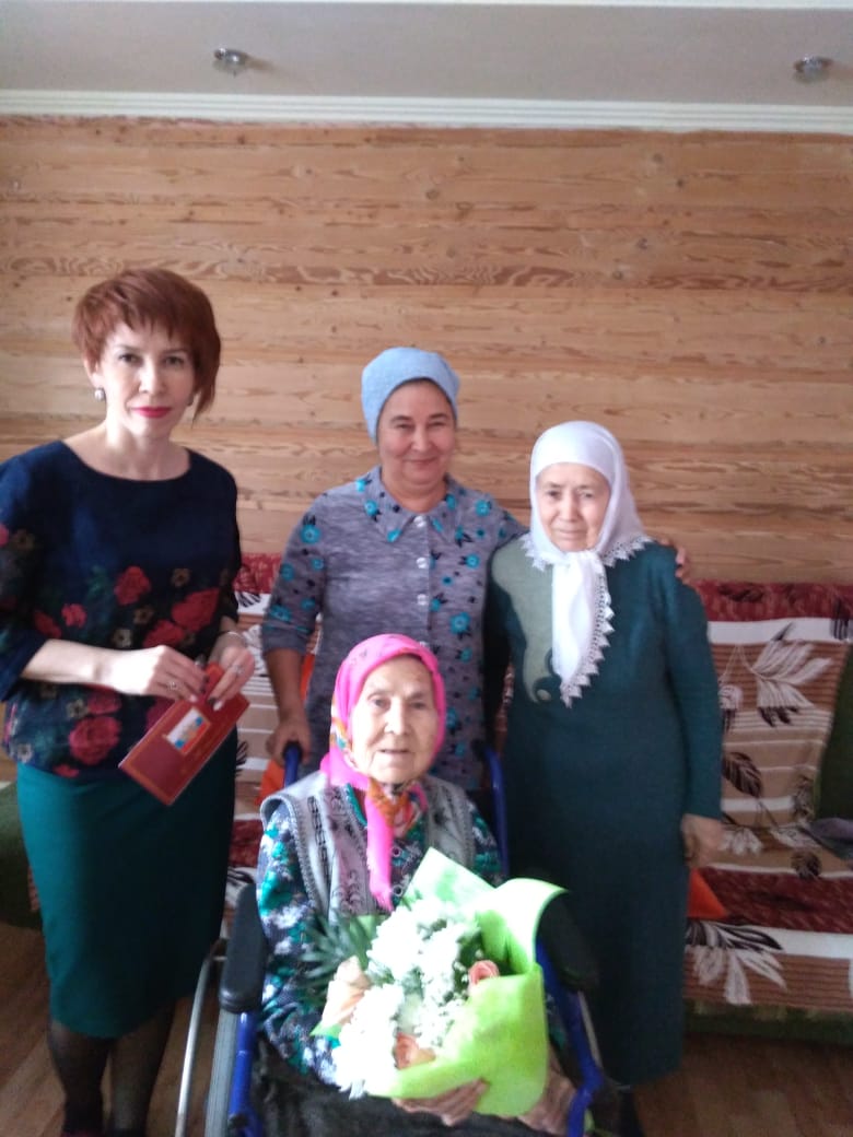 Поздравить с днем рождения, пожелать здоровья и поблагодарить от имени Президента РФ Владимира Путина, от имени руководства района за самоотверженный труд в годы войны юбиляра приехала заместитель руководителя исполнительного комитета по социальным вопросам Эльмира Шагаева.