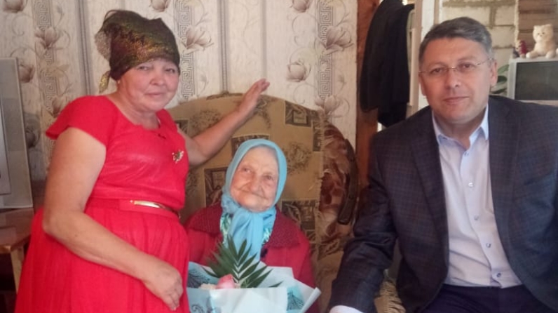 Поздравить с днем рождения, пожелать здоровья и поблагодарить от имени Президента РФ Владимира Путина, главы района Алмаза Ахметшина за самоотверженный труд в годы войны юбиляршу приехала заместитель главы Ильяс Ахметзянов.