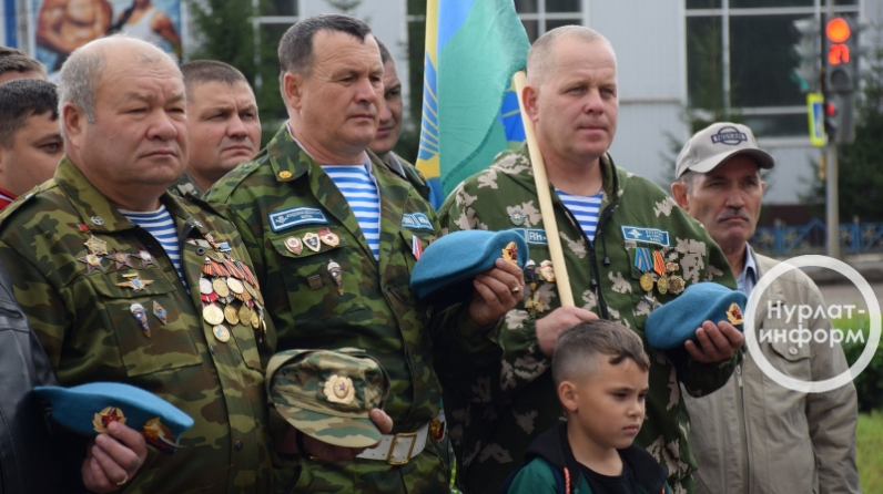 Митинг начался с поднятия флага ВДВ под государственные гимны России и Татарстана. Воинов-десантников, нурлатцев, собравшихся на торжественный митинг, от имени главы Нурлатского муниципального района Алмаза Ахметшина поприветствовал его заместитель Ильяс Ахметзянов. Он поздравил со знаменательным событием и пожелал благополучия, мирного неба. Поздравления прозвучали и от помощника начальника отдела военного комиссариата РТ по г.Нурлат капитана запаса, воина-интернационалиста Марата Абдрахманова, он объявил минуту молчания. К собравшимся обратился и председатель Нурлатского отделения Татарстанской республиканской общественной организации ветеранов войны в Афганистане и других локальных конфликтов Ришат Сафиуллин и др. По традиции здесь же отметили Почетными грамотами, Благодарственными письмами активистов в области военно-патриотического воспитания, за развитие и укрепление ветеранской дружбы Нурлатского района, вручили медали ветерана воздушно-десантных войск.