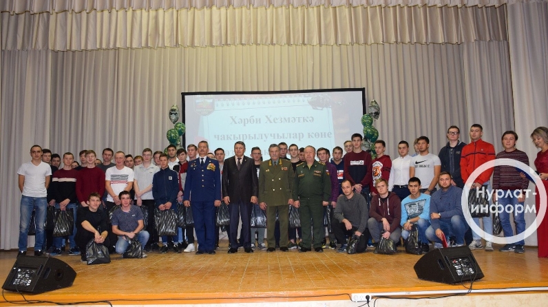 Сегодня, 21 октября, в Доме дружбы народов прошел День призывника. Для призывников, а этой осенью в армию уйдут 70 нурлатцев, их родителей и гостей мероприятия в фойе была организована презентация военно-патриотической работы Нурлатского аграрного техникума. На сцене самодеятельные артисты района, студенты техникума, учащиеся Детской школы искусств исполнили проникновенные песни и танцы на военную тематику. А песню «Офицеры» в исполнении Расима Камаева зал слушал стоя. Все добрые слова и пожелания в этот день были адресованы и ребятам, которые начиная с 24 октября отправятся в ряды Вооруженных сил Российской Федерации, и их родителям. Матери не смогли сдержать своих слез.
