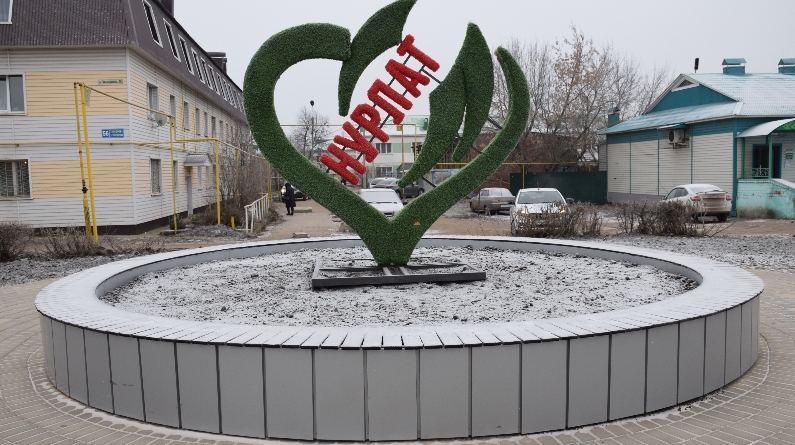 И вот здесь установили зеленый топиарий в форме сердечка со словом «Нурлат», который уже издали привлекает внимание. Хотя он появился здесь совсем недавно, но уже успел занять место в фотоархивах многих нурлатцев. Фигура топиария установлена за счет порядка 100 тысяч рублей, выигранных исполкомом города в конкурсе «Самый благоустроенный населенный пункт».