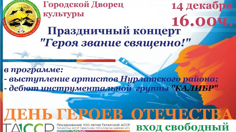 14 декабря в ГДК города Нурлат состоится праздничный концерт "Героя звания священно!".