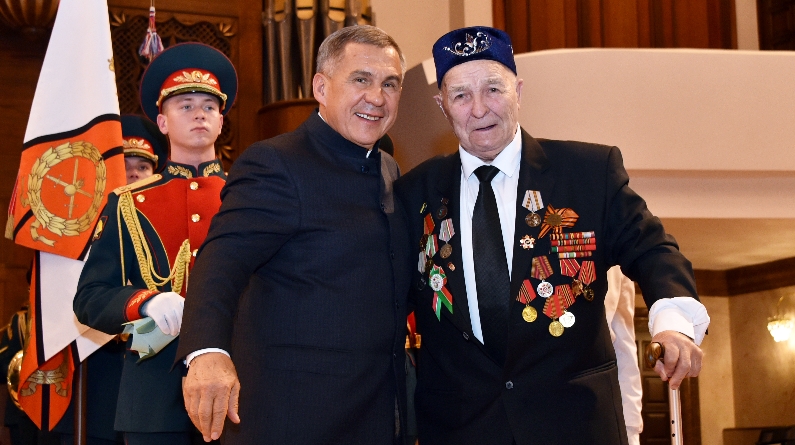 Насыщенная неделя для нурлатцев продолжает череду встреч с Президентом республики. Вчера в ГБКЗ им. С.Сайдашева (Казань) в торжественном приеме Рустама Минниханова по случаю Дня защитника Отечества принял участие и Почетный гражданин города Нурлат, заслуженный работник сельского хозяйства Республики Татарстан, ветеран Великой Отечественной войны Габдулхай Абзалетдинович Ягудин.
