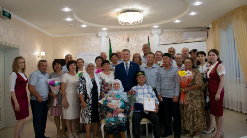 Супружеская пара Валиуллиных – Хасибулла Мотыгуллович и Баян Ибрагимовна, которые счастливо живут в браке более 73 лет, в этот день удостоились медали «За любовь и верность». Глава семьи Хасибулла Мотыгуллович работал заместителем председателя колхоза, председателем сельского Совета, заведующим фермой. Его супруга Баян Ибрагимовна работала в колхозе, вела большое хозяйство. В их дружной семье родилось пять детей, сейчас супружеская пара радуется успехам 9 внуков и 19 правнуков.