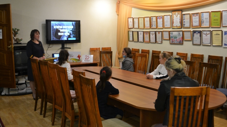 В рамках проекта "Уроки Второй мировой" экскурсовод музея Розалия Вильданова прочитала детям лекцию на тему "Вторая мировая война 1939-1945 гг.", в ходе которой рассказала о периодах войны, а также уделила внимание роли Советского Союза и красноармейских солдатов в этой страшной битве. Лекция сопровождалась видеопрезентацией.