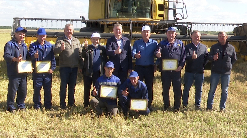Глава района Алмаз Ахметшин наградил передовых комбайнеров КФХ «Сулейманов».