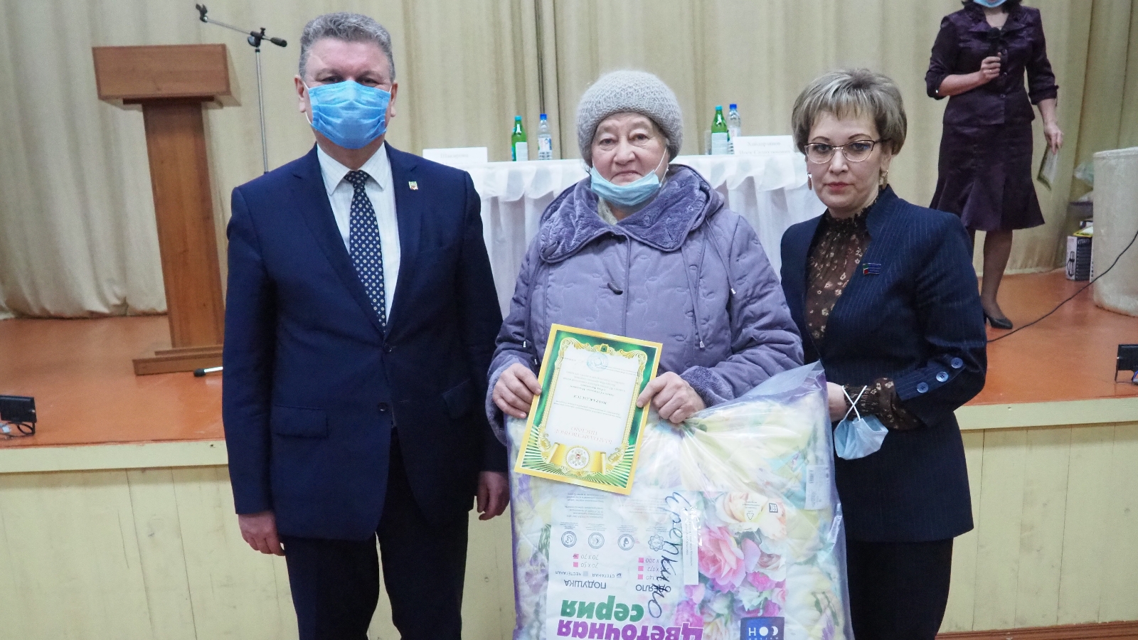 Сход граждан в Степноозерском сельском поселении закончился на прияной ноте: глава района Алмаз Ахметшин вручил подарки семейным парам, которые прожили 50 и 60 лет счастливой совместной жизни, также были отмечены жители, активно участвующие в жизни сельского поселения, не остались без внимания и граждане, вышедшие на пенсию.