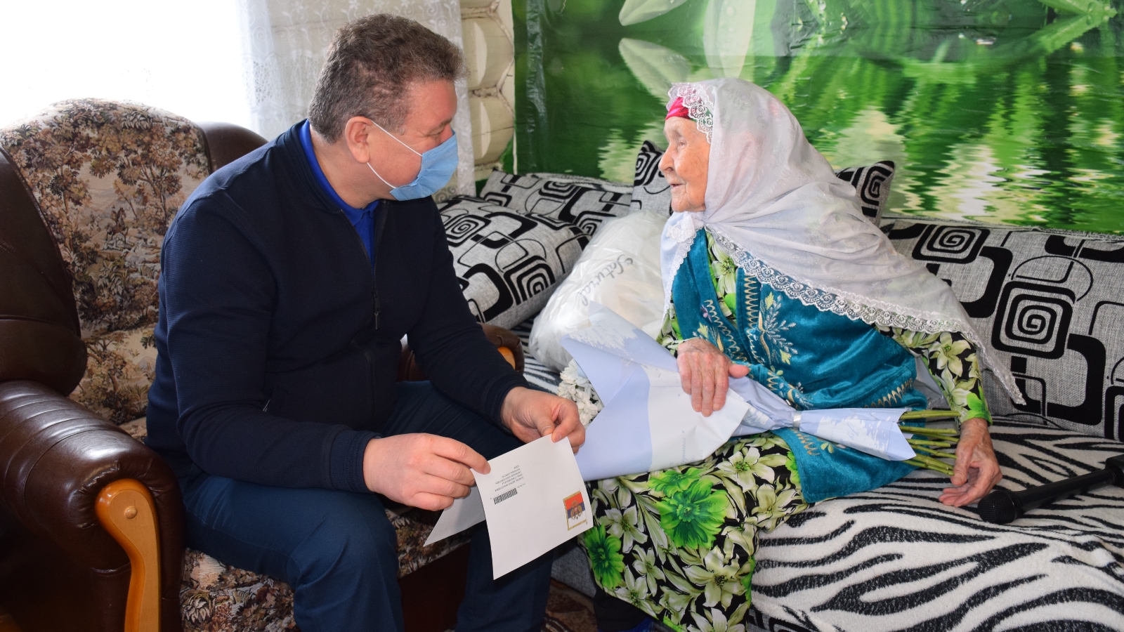 Одним из первых ее поздравил глава района Алмаз Ахметшин. Он выразил слова восхищения бодростью духа и оптимизмом юбилярши, передал ей поздравительную открытку Президента РФ Владимира Путина и памятный подарок.