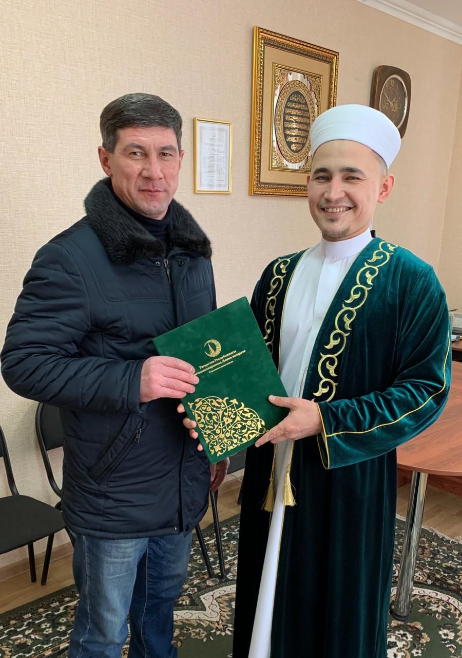С пожеланиями на дальнейшее сотрудничество и совместную работу в деле возрождения духовно-нравственных основ многонационального народа, проживающих на территории Нурлатского района, Благодарственное письмо Линару Нурисламовичу от имени муфтия республики на днях передал мухтасиб района Наиль хазрат Абулханов.