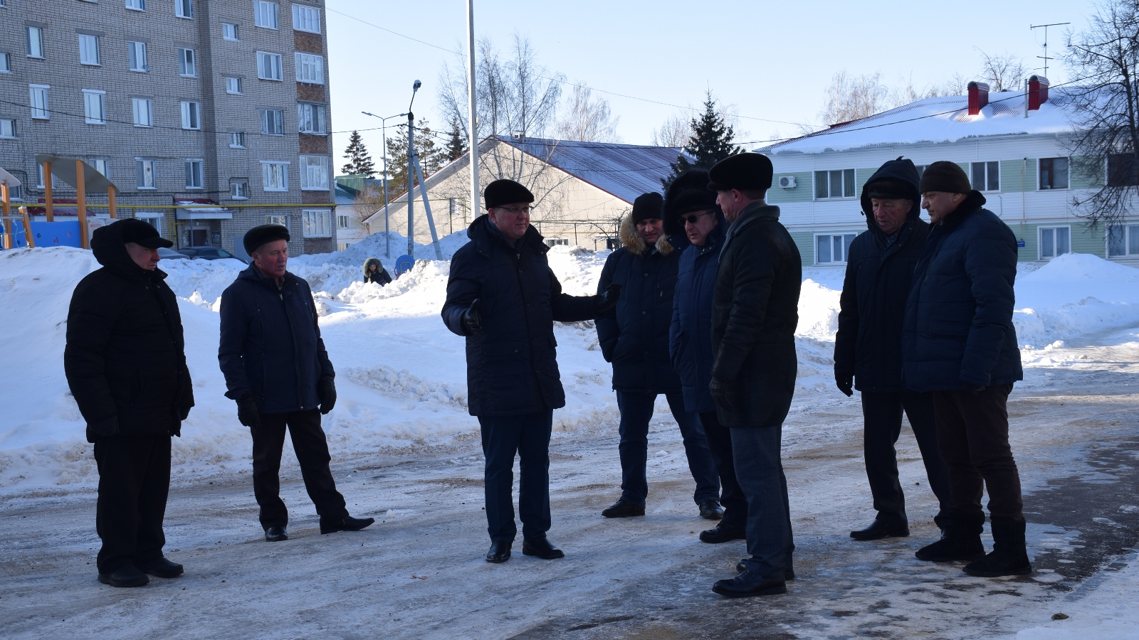 Вначале глава района посетил двор, объединяющий несколько многоэтажных домов по ул. Карла Маркса, Гагарина, Салимжанова. Здесь в 2020 году благоустройство двора провели в рамках президентской программы «Наш двор»: установили малые архитектурные формы, проложили тротуары, построили парковочные места для автомашин.