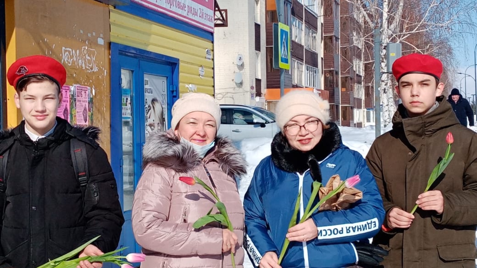По доброй традиции, которая существует в течение нескольких лет, члены Нурлатского местного отделения партии «Единая Россия» организовали прекрасную акцию «Дарите женщинам цветы». Юнармейцы в парадной форме в центре города поздравили женщин с 8 Марта и вручили им красные тюльпаны. Теплые пожелания юнармейцев, искренние улыбки вкупе с цветами всем подняли настроение. «Цветы сделали еще краше этот солнечный весенний день», – поблагодарили женщины.