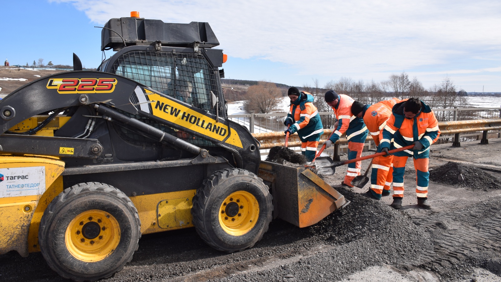 Но у каждого действия свой черед. Вот и дорожные рабочие Андрей Козлов, Виталий Трегубов, Руслан Хайбуллин, Альберт Сафин, Антон Лукьянов грузили вырезанную с выбоин асфальтовую крошку, которую Рамиль Нурмухаметов сразу же вывозит на обочину. Мужчины и обернуться не успевают, как его маленькая, но юркая техника возвращается с опустошенным ковшом. Даже на перекур не останавливаются. Да и некогда. Ведь КамАЗ с целым бункером асфальта уже здесь, только ждет сигнала, чтобы разгрузиться. Поэтому нужно торопиться.