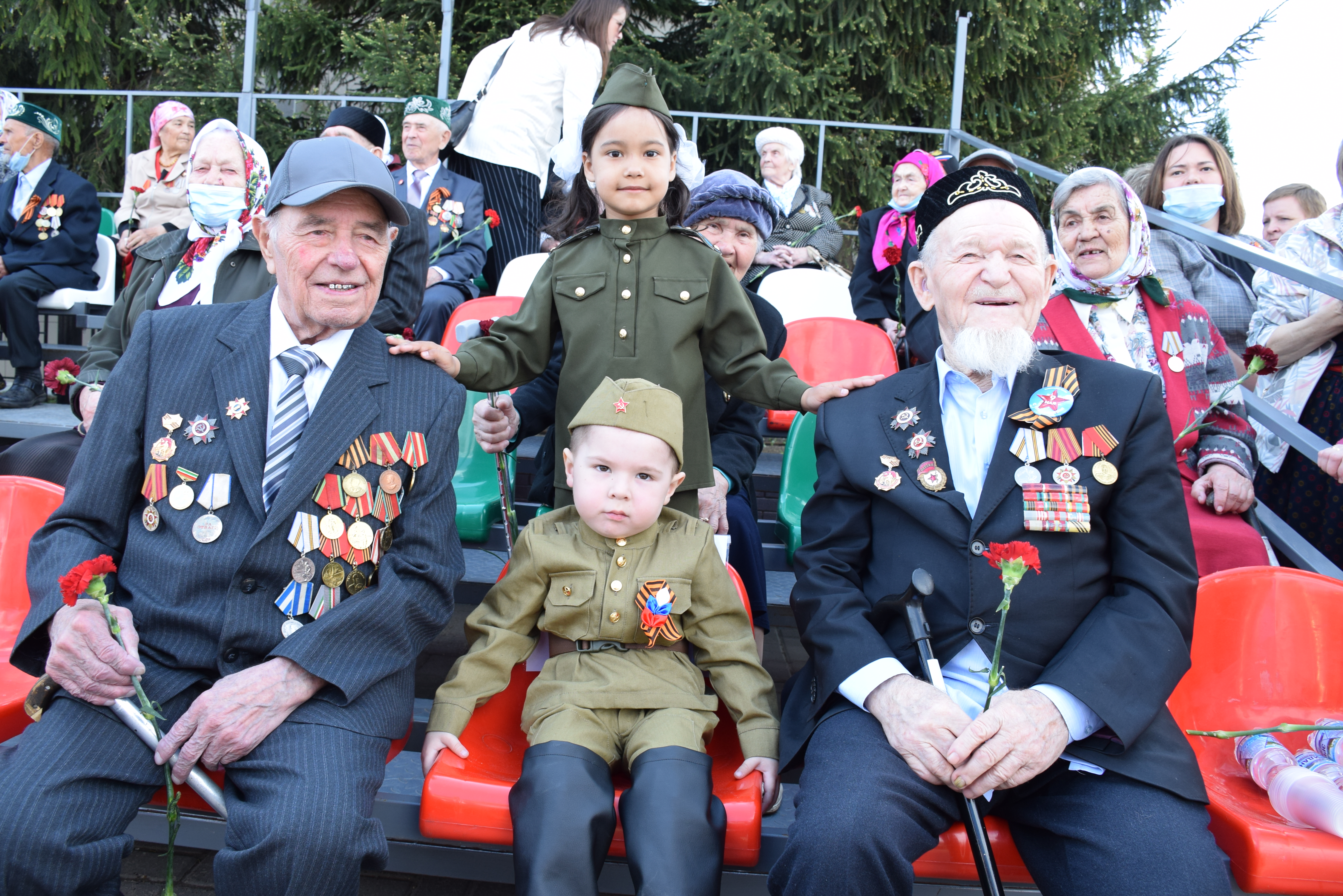 Каим Самигуллин из Чулпанова и Александр Лебедев из Нурлата встретили 76-й День Победы вместе с земляками на Центральной площади.