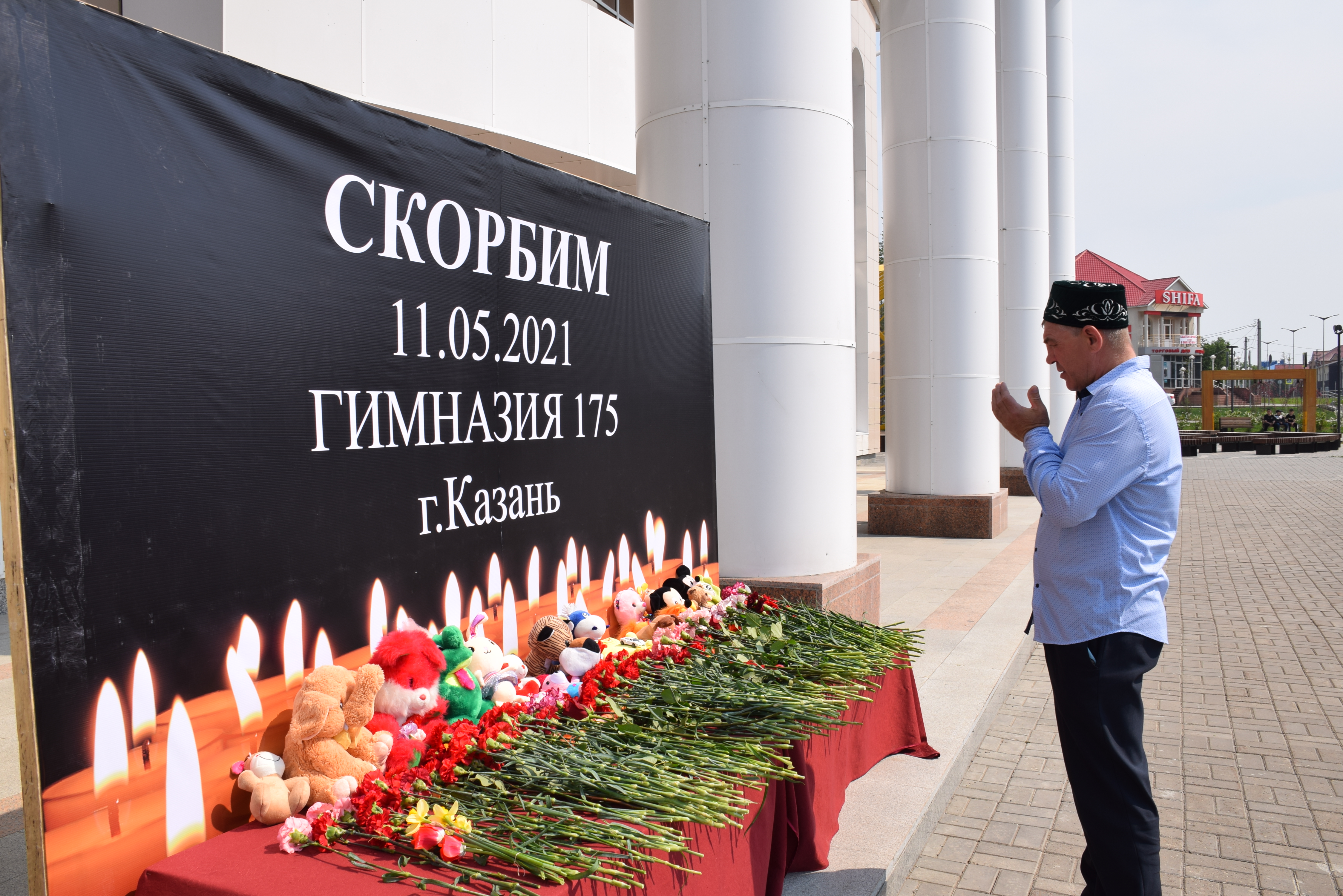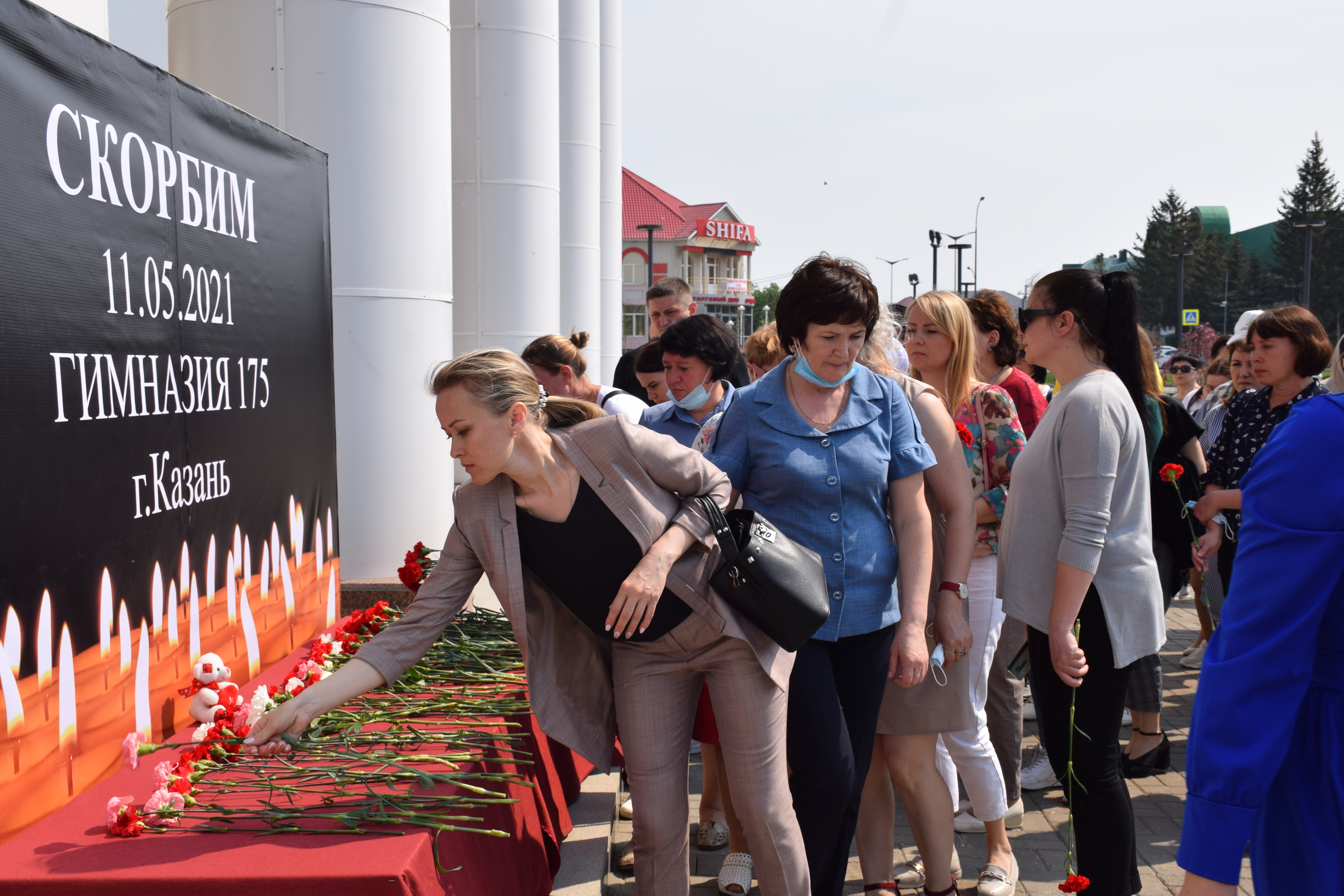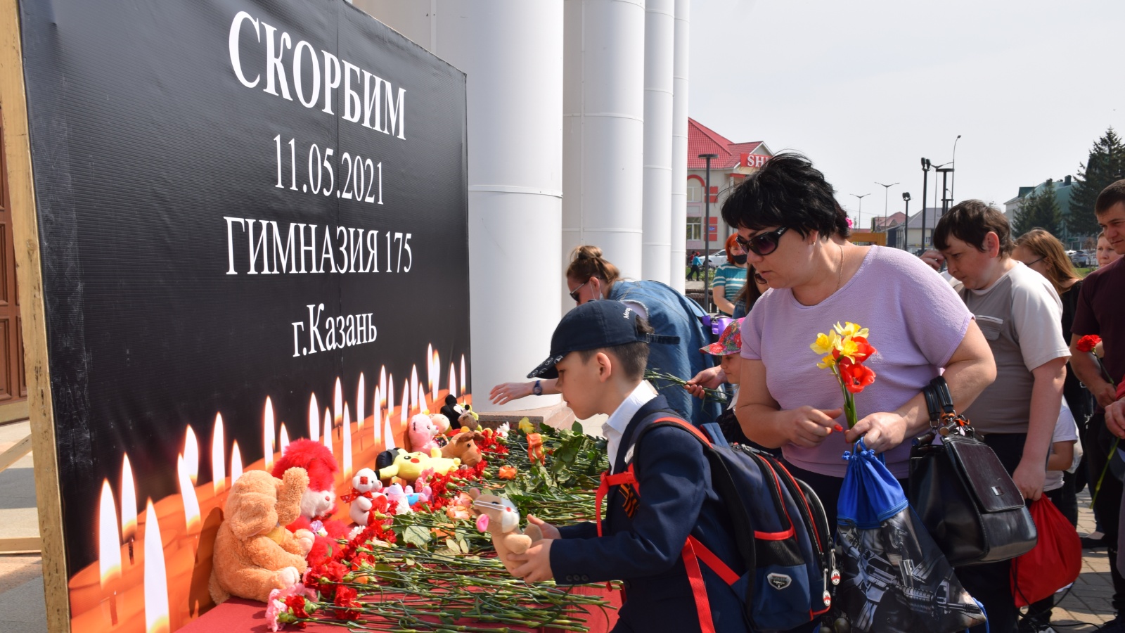 Сегодня на центральной площади города нурлатцы организовали стихийный мемориал в память о погибших при стрельбе в гимназии №175 города Казань.