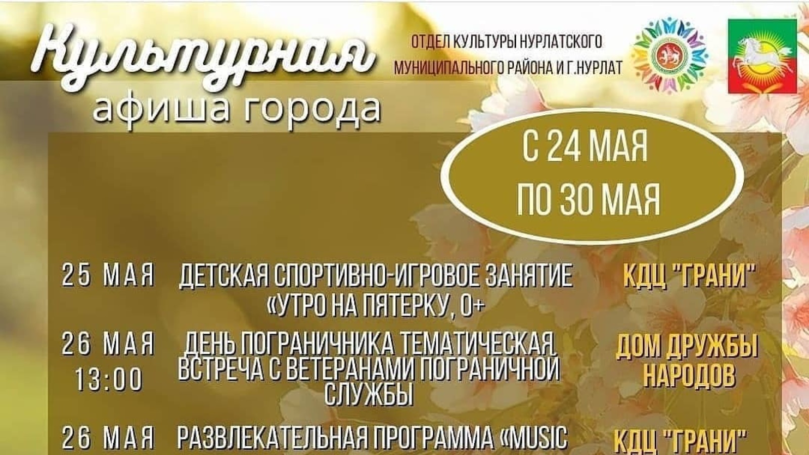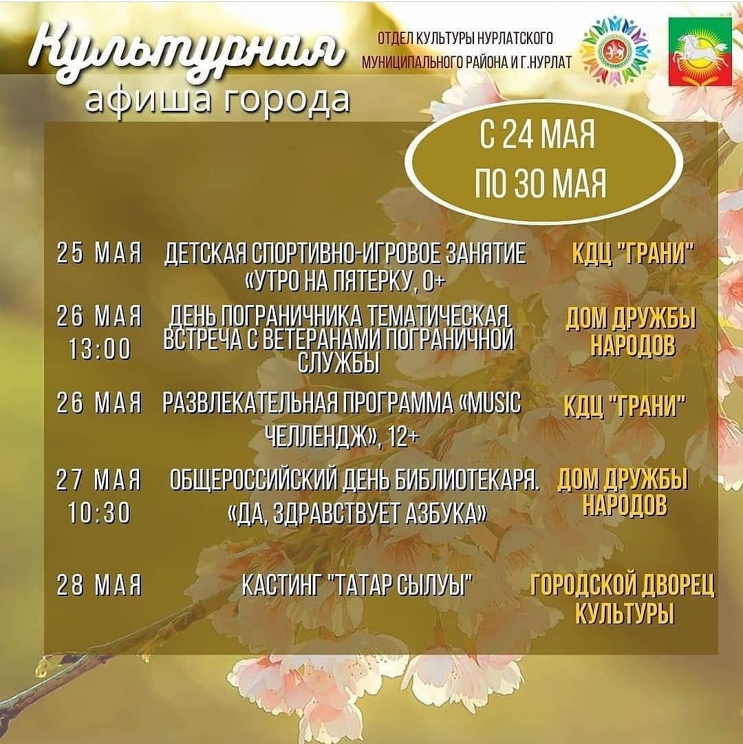 Культурная афиша города Нурлат с 24 по 30 мая 2021 года.