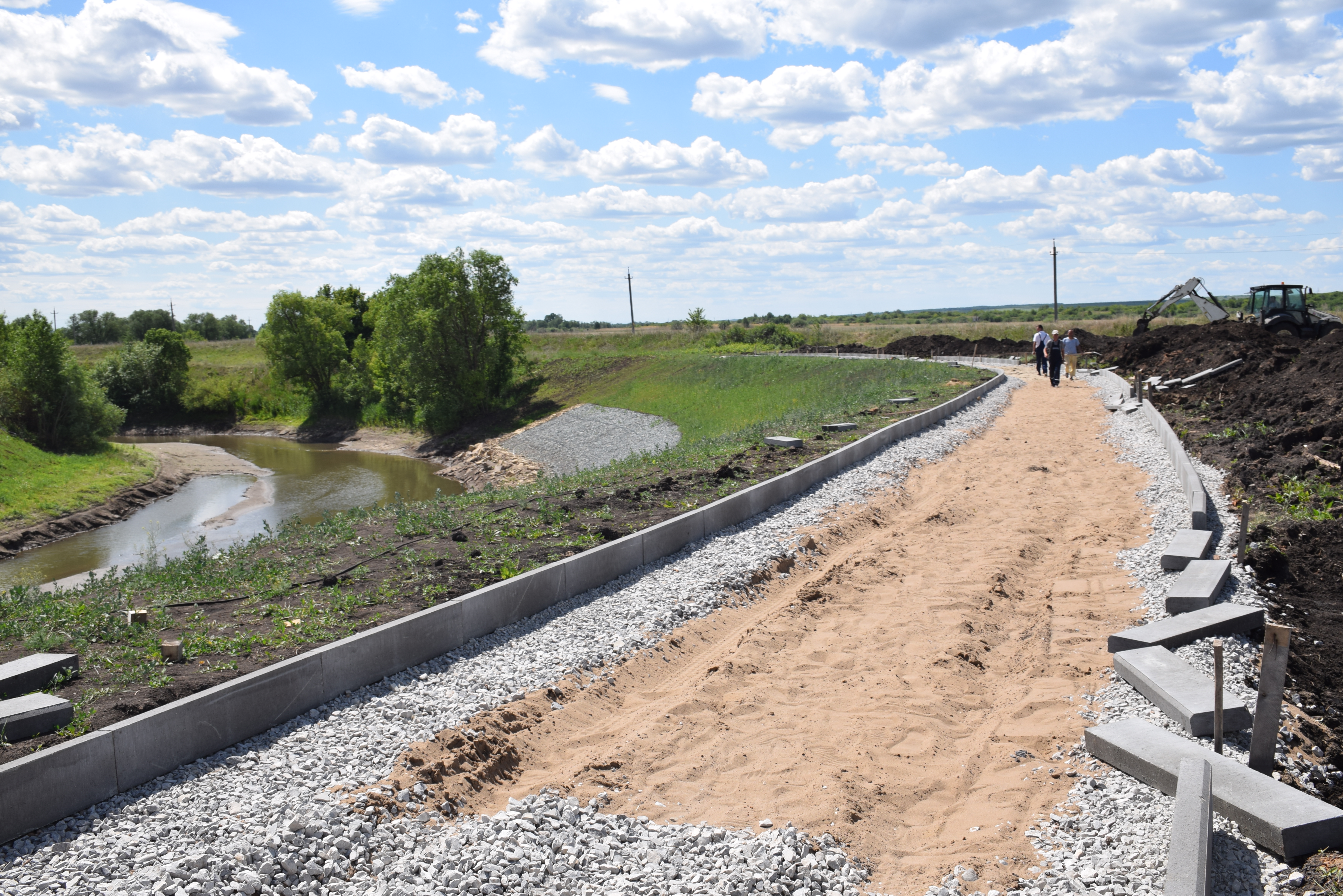 В данный момент здесь заняты две подрядные организации, их работы синхронизированы. Одна из них продолжает мелиоративные работы, другая занята устройством пешеходных тротуаров.