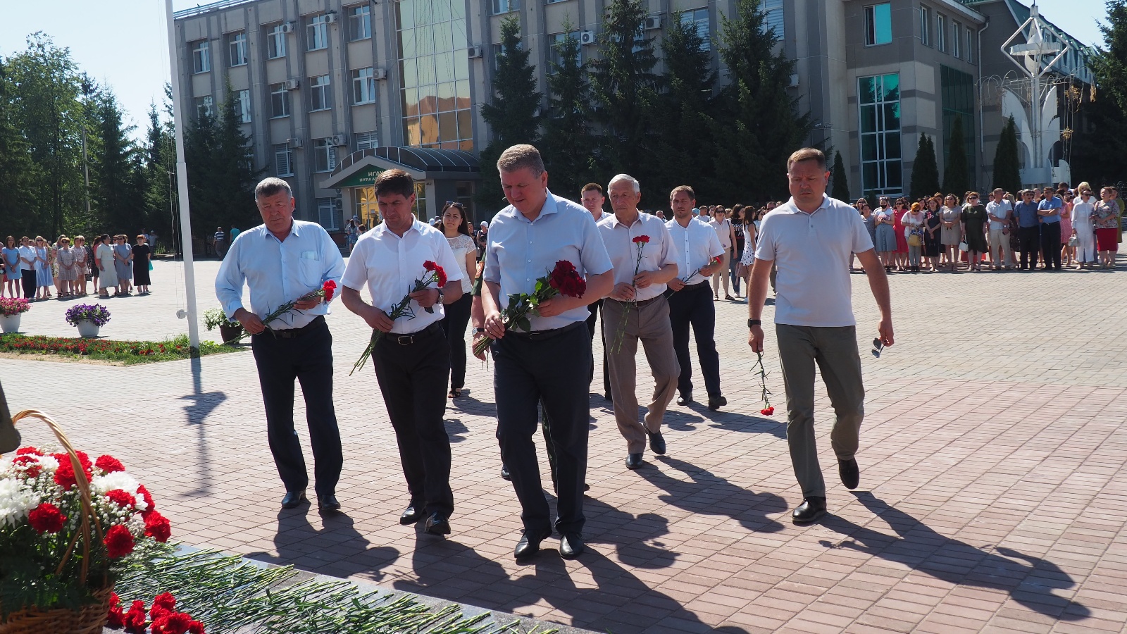 С самого утра сюда шли неравнодушные горожане, представители предприятий и организаций. Митинг, посвященный 80-й годовщине начала Великой Отечественной войны, открыл глава района Алмаз Ахметшин.