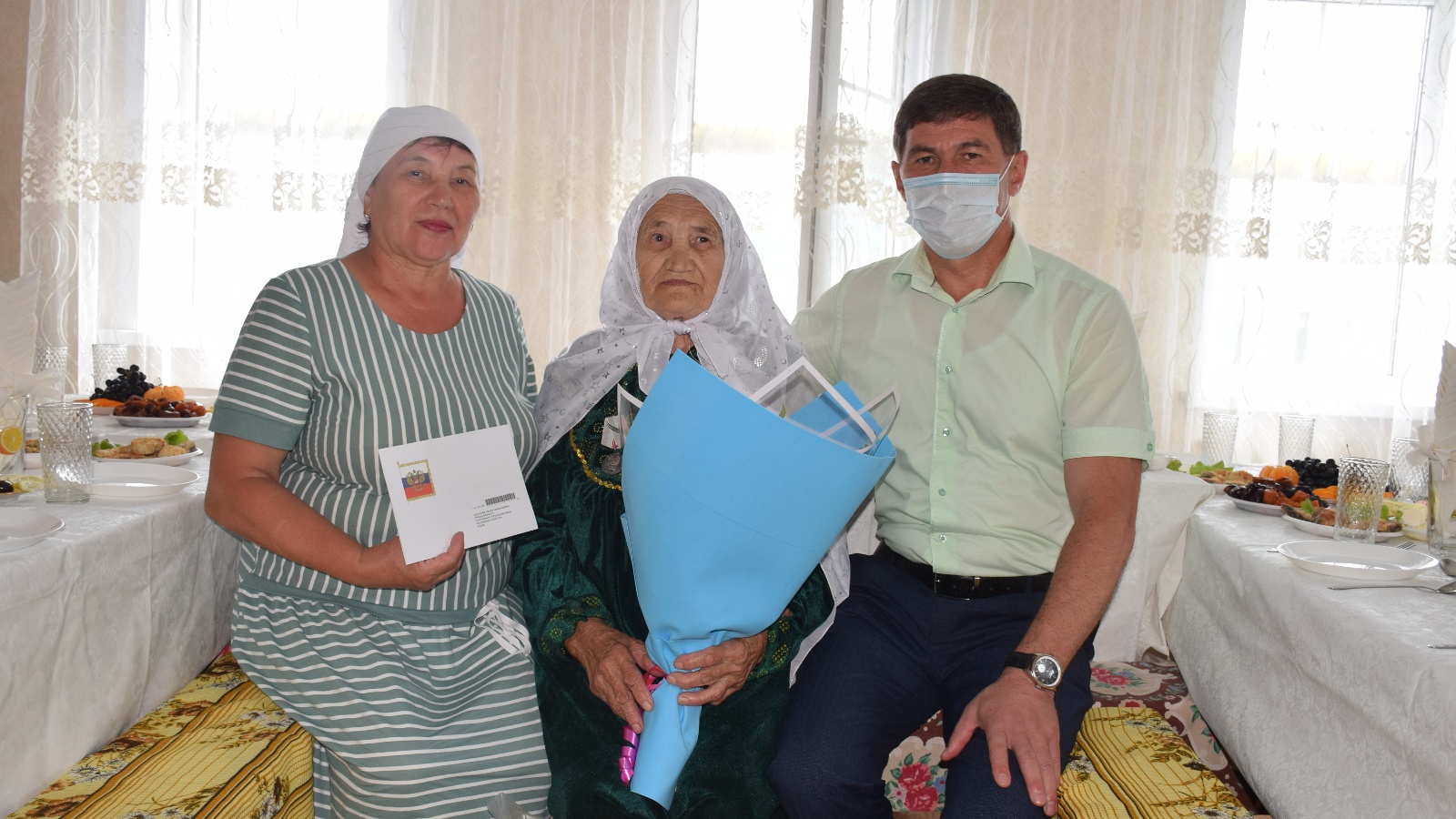 В свои 90 лет она остается общительной, жизнерадостной, является примером не только для своих детей и внуков, но и для многочисленных родственников, которые сегодня тоже присоединились к поздравлениям. А от имени односельчан ее поздравил глава Кичкальнинского сельского поселения Фалис Сабиров.