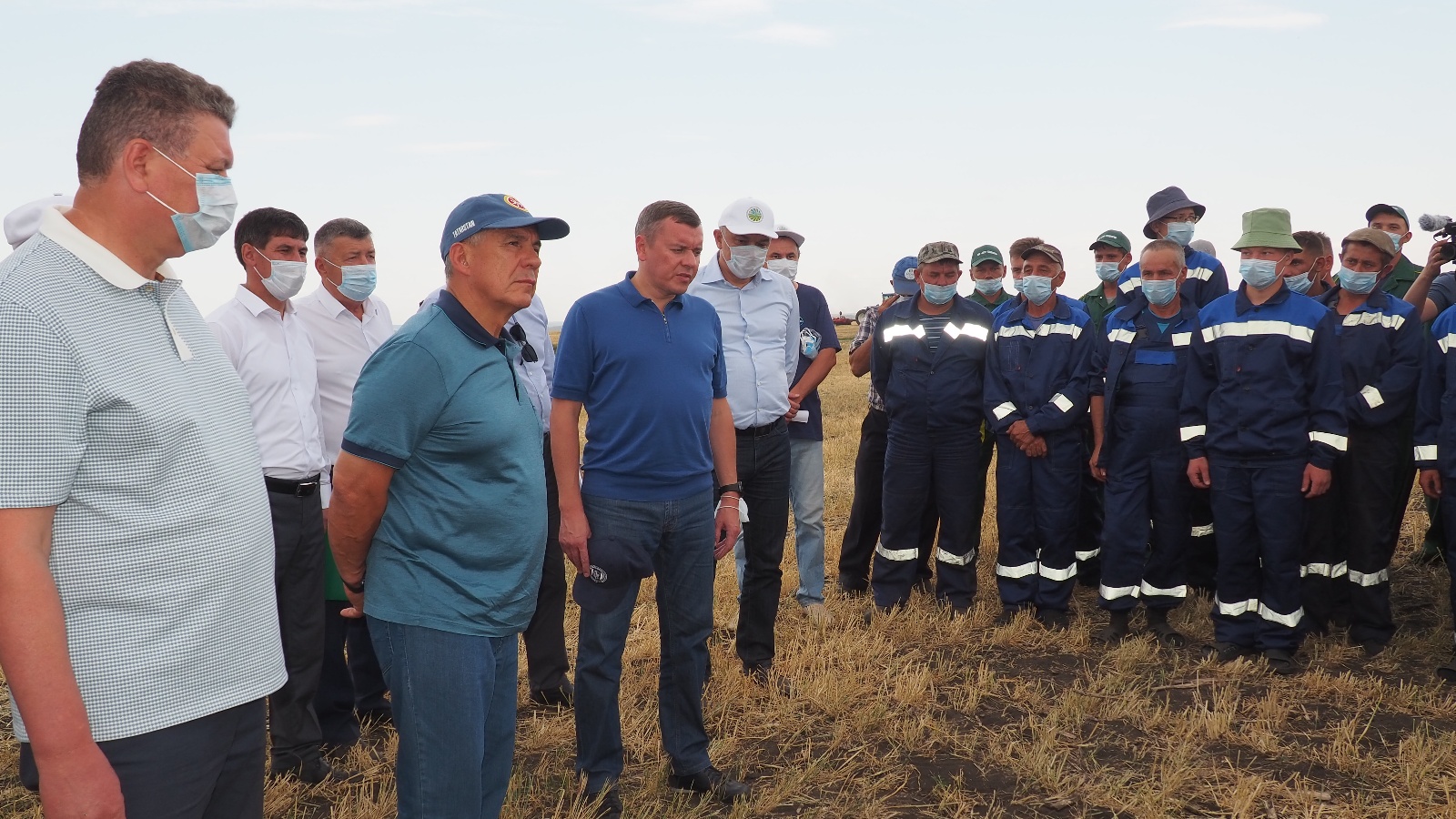 После ознакомления с выставкой продукции местных производителей Рустаму Нургалиевичу доложили о ходе уборочных работ. Об особенностях нынешней жатвы в связи с засухой рассказал глава района Алмаз Ахметшин. Он отметил, что уборочная кампания ведется с учетом всех рекомендаций Министерства сельского хозяйства республики.