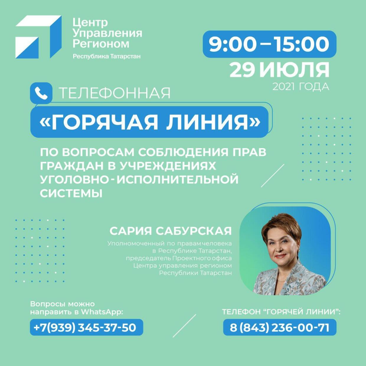 Получить исчерпывающую информацию, правовую консультацию, разъяснить спорные ситуации гражданам помогут представители Аппарата Уполномоченного по правам человека в Республике Татарстан, Управления Федеральной службы исполнения наказаний Российской Федерации по Республике Татарстан, Общественной наблюдательной комиссии Республики Татарстан, Прокуратуры Республики Татарстан.