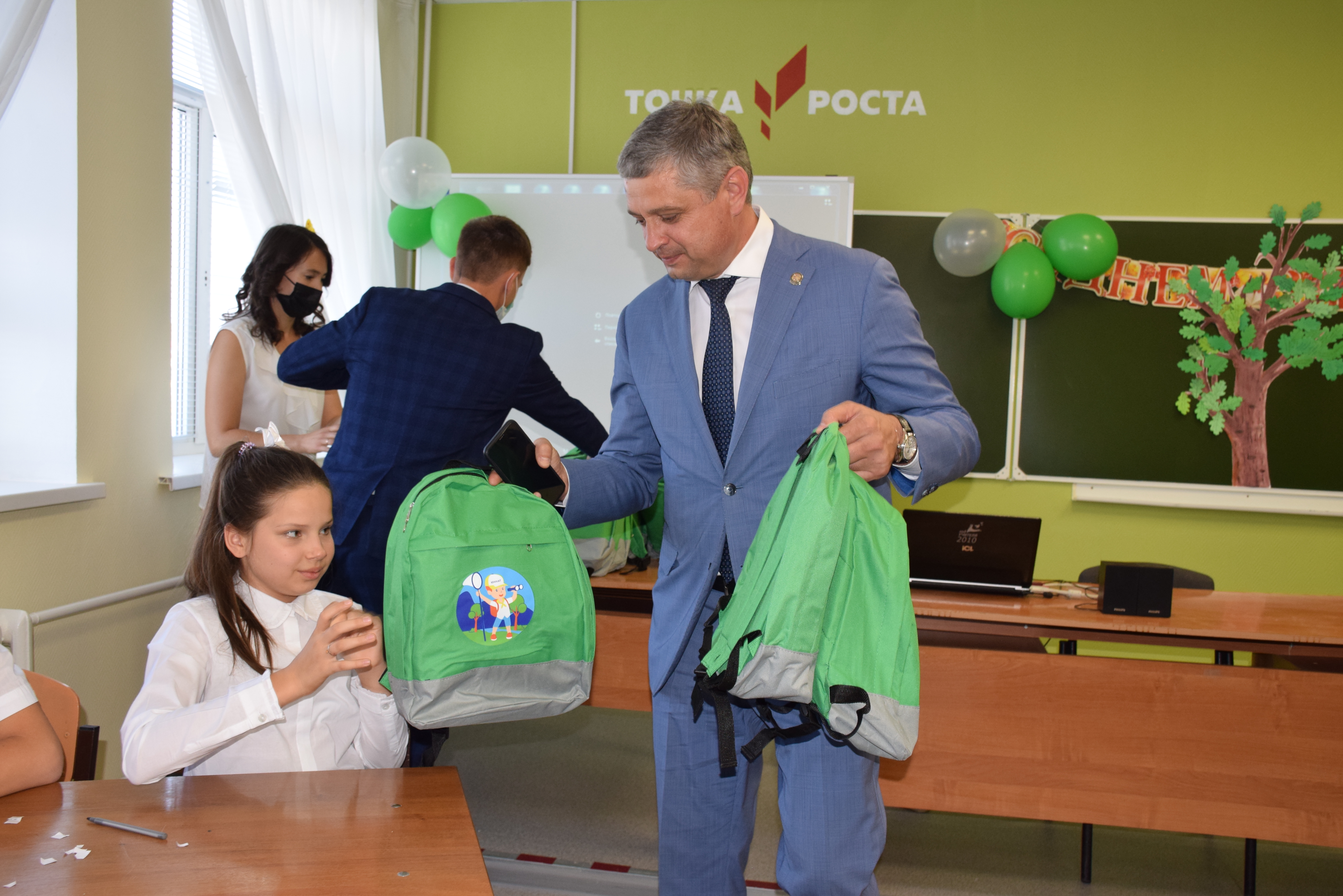 «В ваших руках экологическое благополучие нашей страны, вы должны сохранить нашу планету зеленой и чистой для будущих поколений», – сказал в ходе беседы с гимназистами Александр Валерьевич. Юным экологам он преподнес и подарки – рюкзаки юных исследователей зеленого цвета.