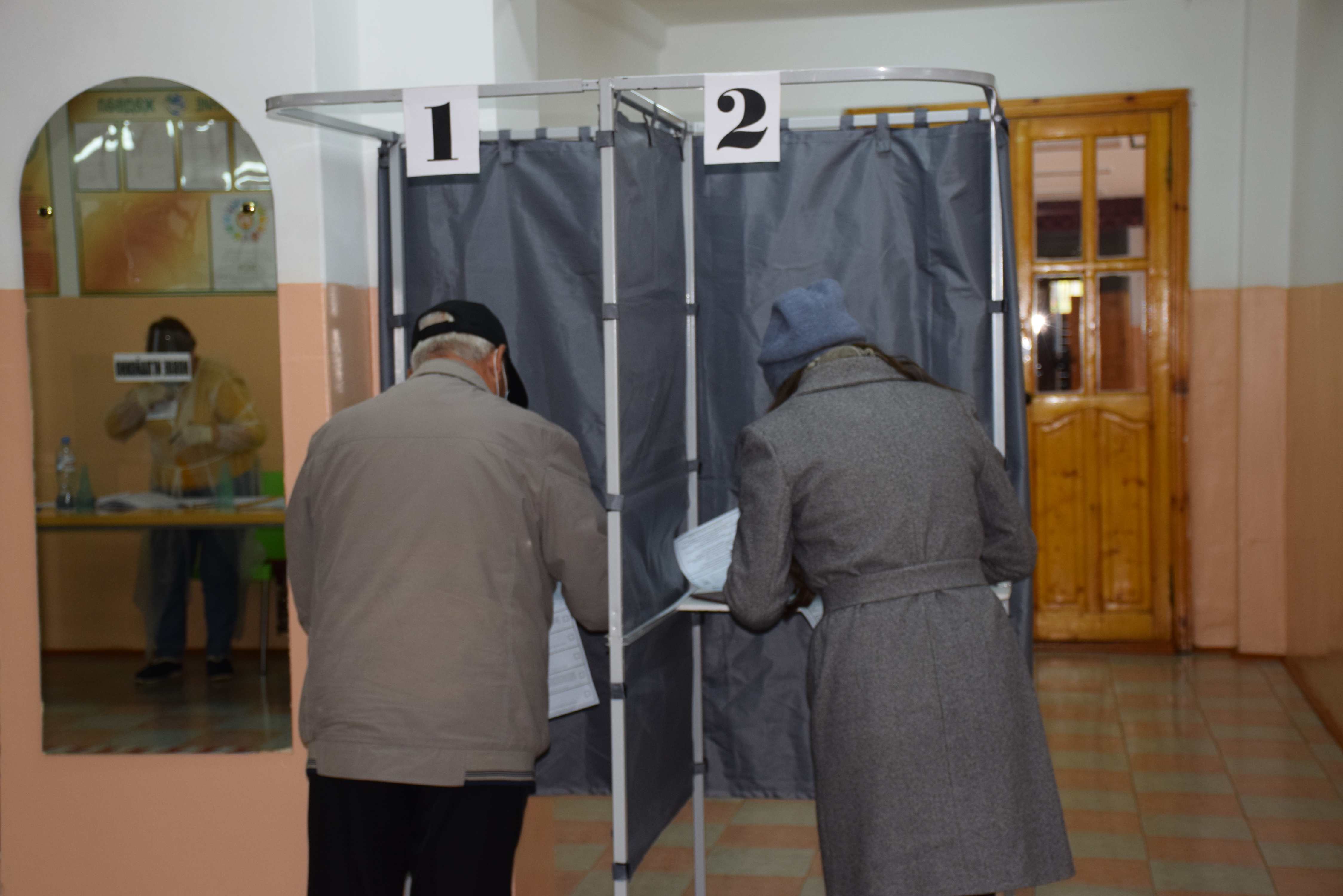 На второй день голосования, 18 сентября, многие сельчане собрались у здания школы задолго до открытия участка.