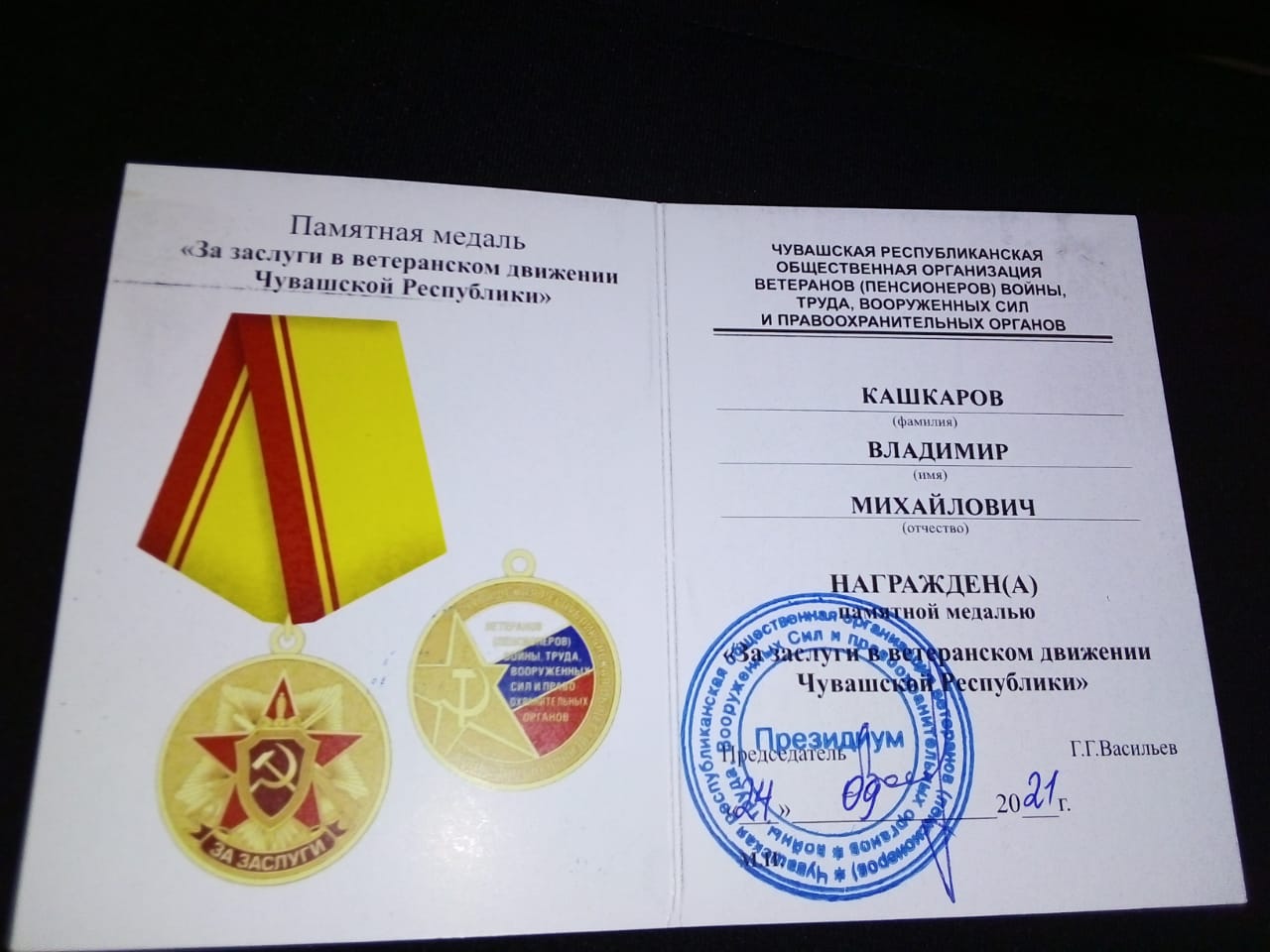 На мероприятии Владимиру Кашкарову и Вячеславу Панкову из Богдашкина вручили памятную медаль «За заслуги в ветеранском движении Чувашской Республики», Валентина Бурайкина поздравили с 80-летним юбилеем.