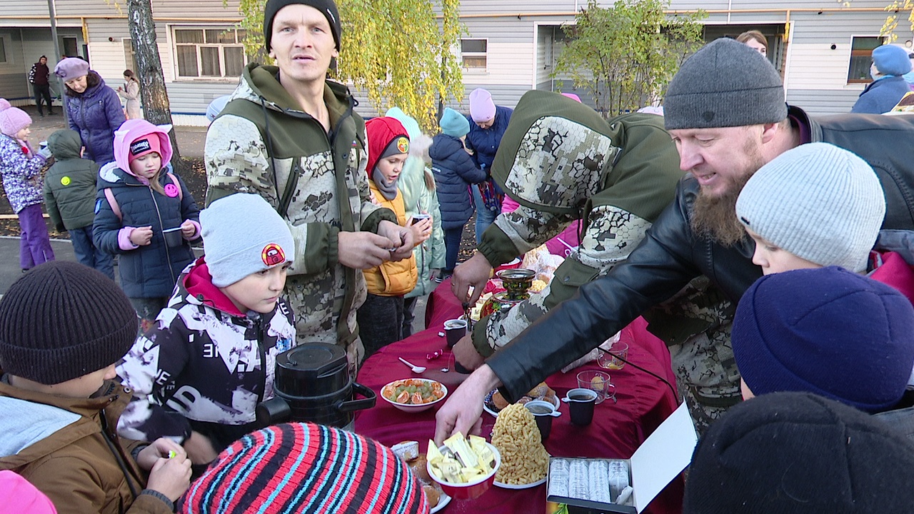 На импровизированном столе гостям и соседям по двору предлагали ароматный чай из самовара. Сладостями и выпечкой угощали тоже.
