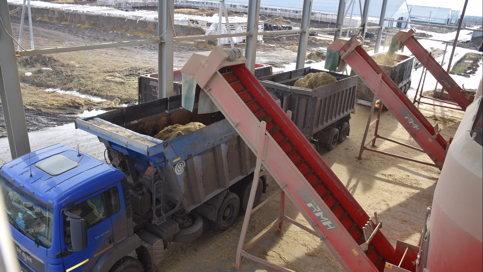 «На сегодняшний день в агрохолдинге содержится 4500 голов дойных коров. Общее поголовье животных порядка 9000. Поэтому строительство кормоцентра было требованием дня. Сегодня животным ежедневно требуется 250-280 тонн кормов, все они готовятся здесь. Суточная мощность центра составляет 350 тонн. В дальнейшем есть возможность увеличить поголовье скота или оказывать услуги по приготовлению кормов и другим хозяйствам», – говорит главный специалист по воспроизводству агрохолдинга Наталья Козина.