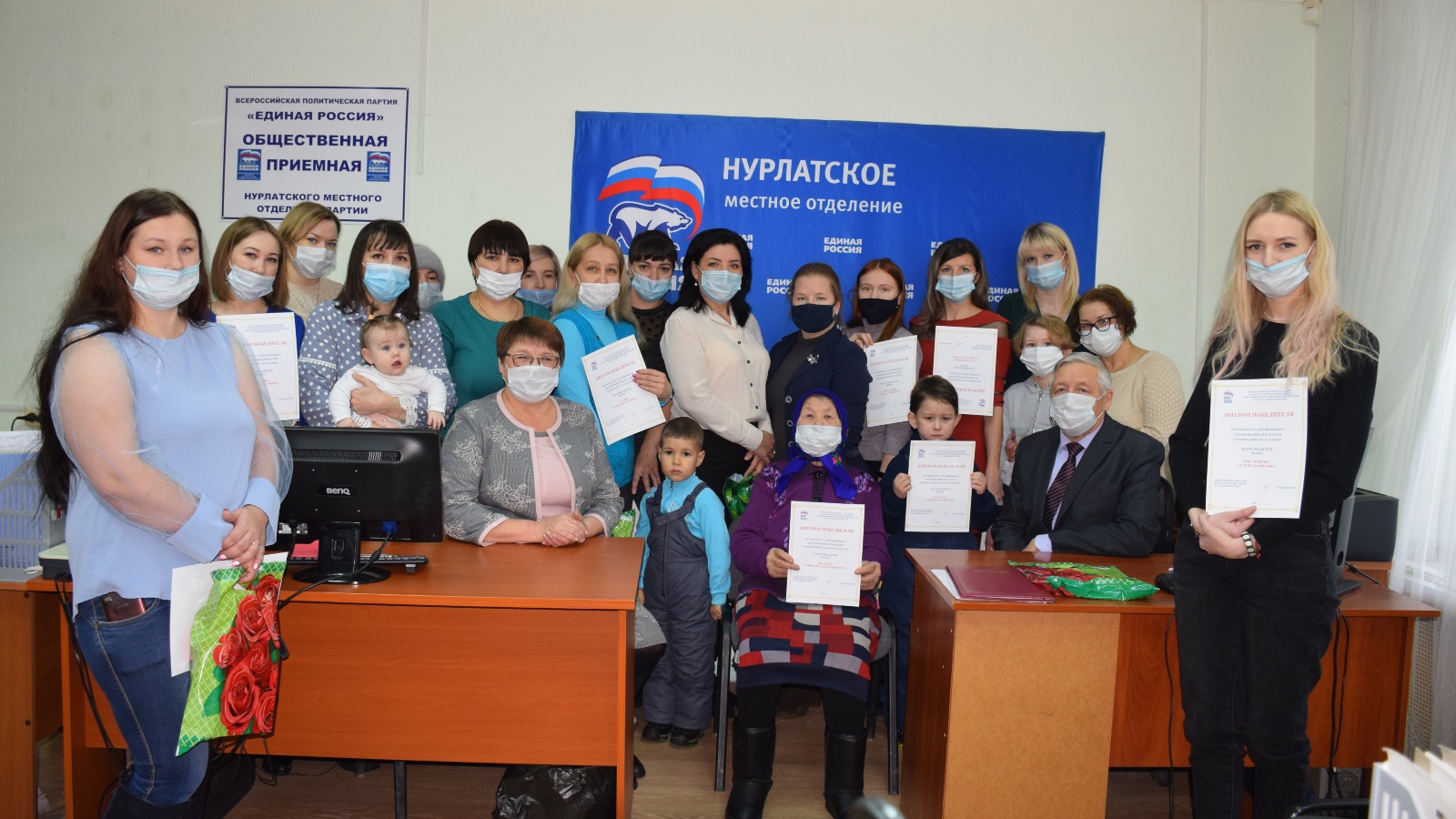 Сегодня в Нурлатском местном отделении партии «Единая Россия» состоялось награждение победителей очередного фотоконкурса, посвященного Дню матери. Грамоты от имени секретаря местного отделения Алмаза Ахметшина и подарки им вручил член политсовета, заместитель председателя Совета города Нурлат Владимир Кашкаров, который и возглавил конкурсную комиссию. «Хочу Вас поблагодарить за участие в конкурсе и поздравить с победой. Творческих успехов вам, удачи в воспитании ваших детей, надеемся на дальнейшее творческое сотрудничество», – пожелал Владимир Михайлович.