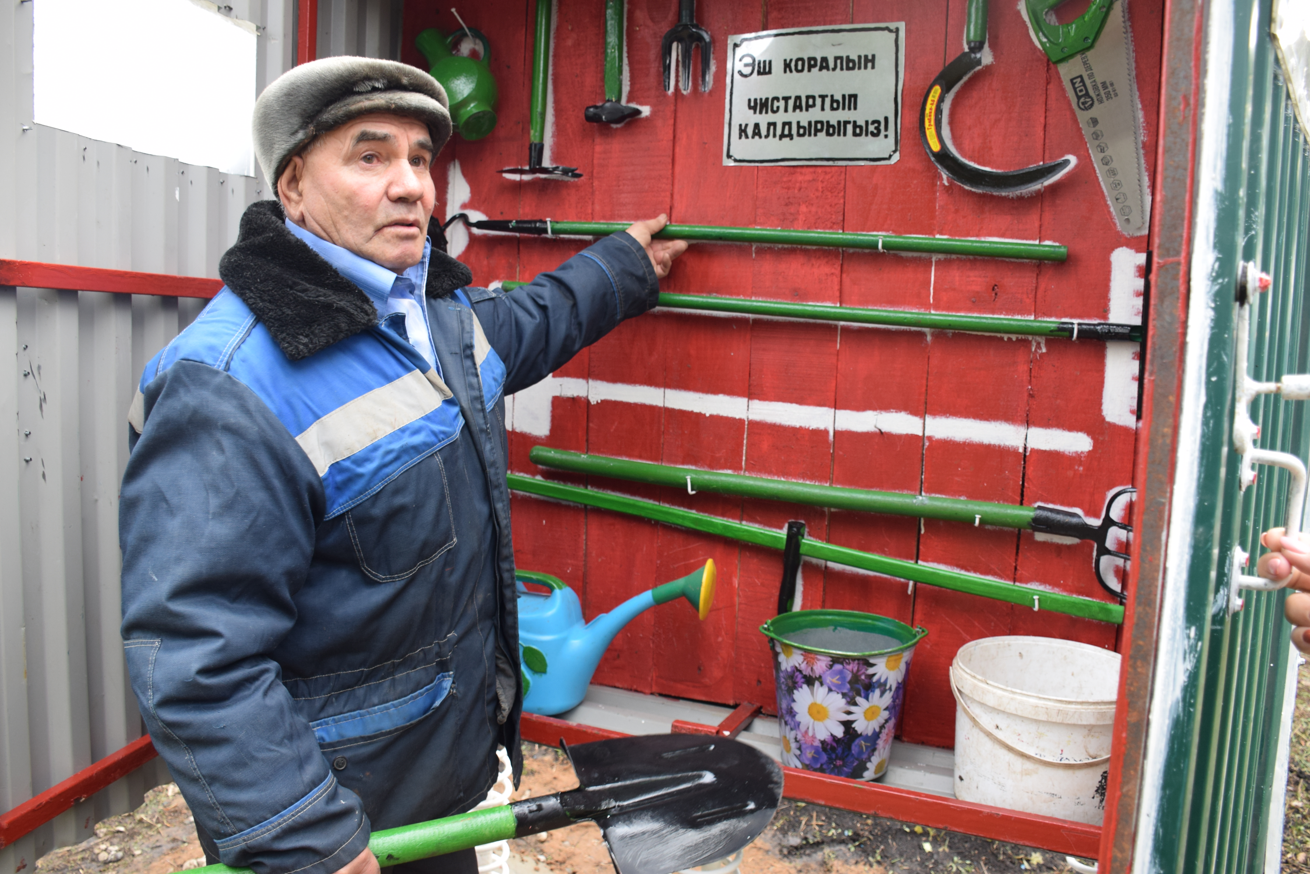 «Здесь разместили рабочие инструменты, есть все, что нужно для тех, кто приходит посетить могилы – лопата, вилы, лейка, мотыга и другое. Ведь не каждый может принести их с собой. Многие приезжают со стороны, из дальних городов. А здесь все готово», – говорит Анвар абый.