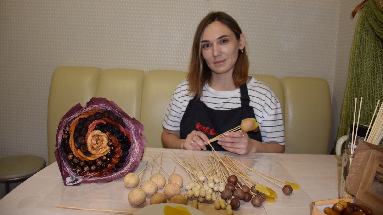 Позже Екатерина начала собирать оригинальные букеты и корзинки из сухофруктов. Тогда начинающий фуд-флорист и не предполагала, что новое хобби станет ее образом жизни и источником дохода.