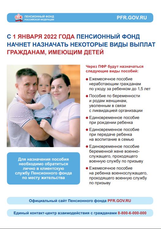 С 1 января 2022 года некоторые пособия, ранее предоставляемые соцзащитой, будут предоставляться Пенсионным фондом.