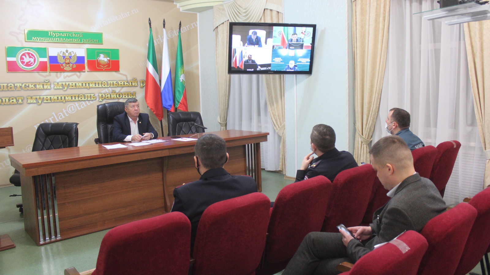 Нурлатцы под началом руководителя исполнительного комитета Нурлатского муниципального района Рафиса Хамзина приняли участие в республиканском заседании комиссии по чрезвычайным ситуациям и пожарной безопасности в формате видеорежима.