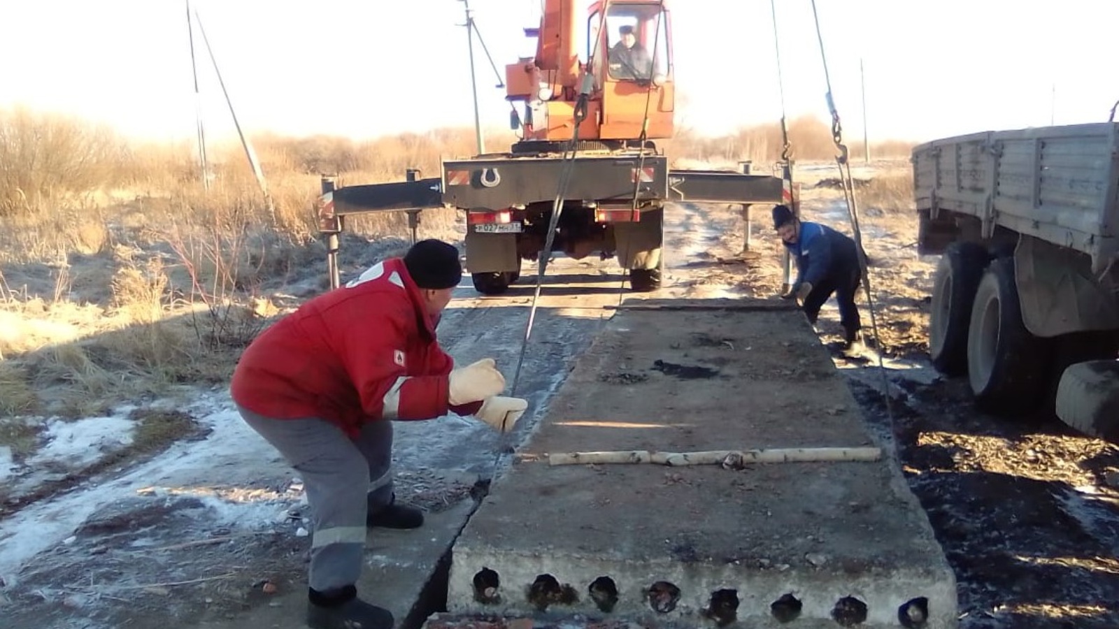 Дорогу решили выложить порядка двадцатью бетонными плитами, которые разобрали с территории уже старого непригодного объекта, находящегося в центре села.