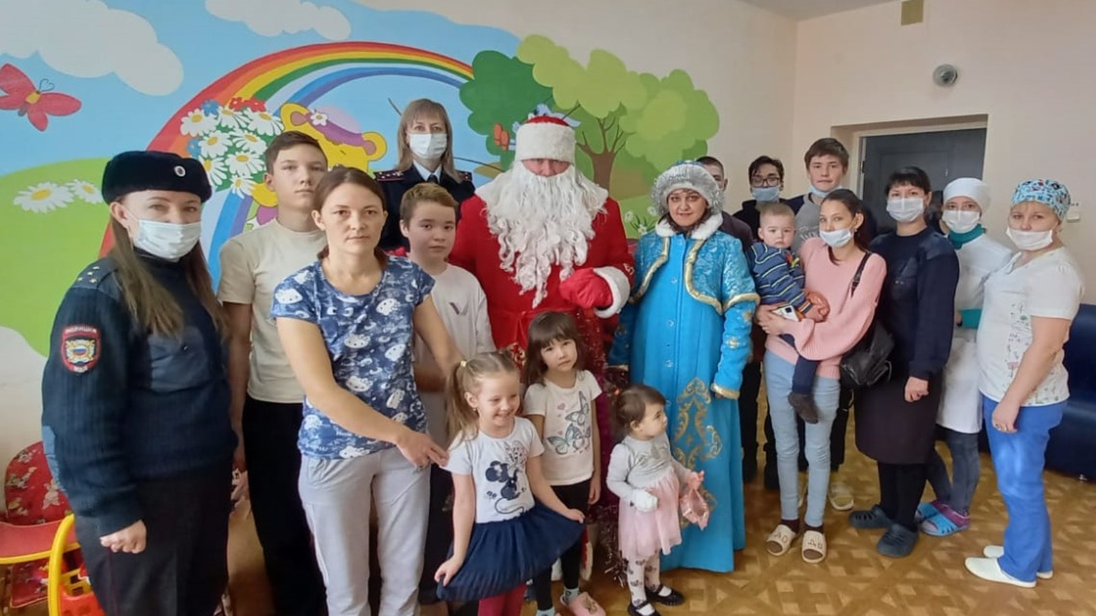 Полицейский Дед Мороз побывал и у пациентов педиатрического отделения. В игровой комнате дети рассказывали новогодние стихотворения, водили хоровод возле маленькой елочки. Гости пожелали им скорейшего выздоровления, и каждый ребенок получил из мешка Деда Мороза новогодний подарок. Игрушки и сладкие подарки получили 28 маленьких пациентов.