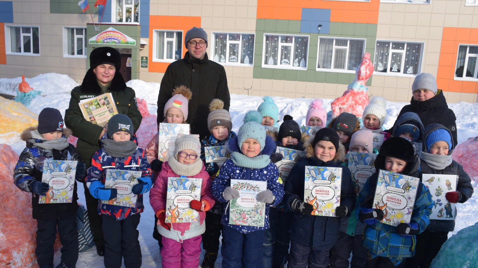 Поздравляя дошколят с успешным преодолением зимней тропы, она передала им подарки от главного эколога Татарстана Александра Шадрикова – книгу-раскраску с настольной игрой.