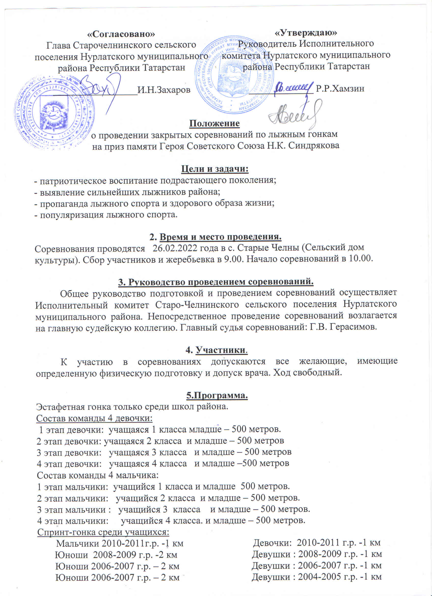 26 февраля в Старых Челнах состоятся закрытые соревнования по лыжным гонкам на приз памяти Героя Советского Союза Н.К.Синдрякова.