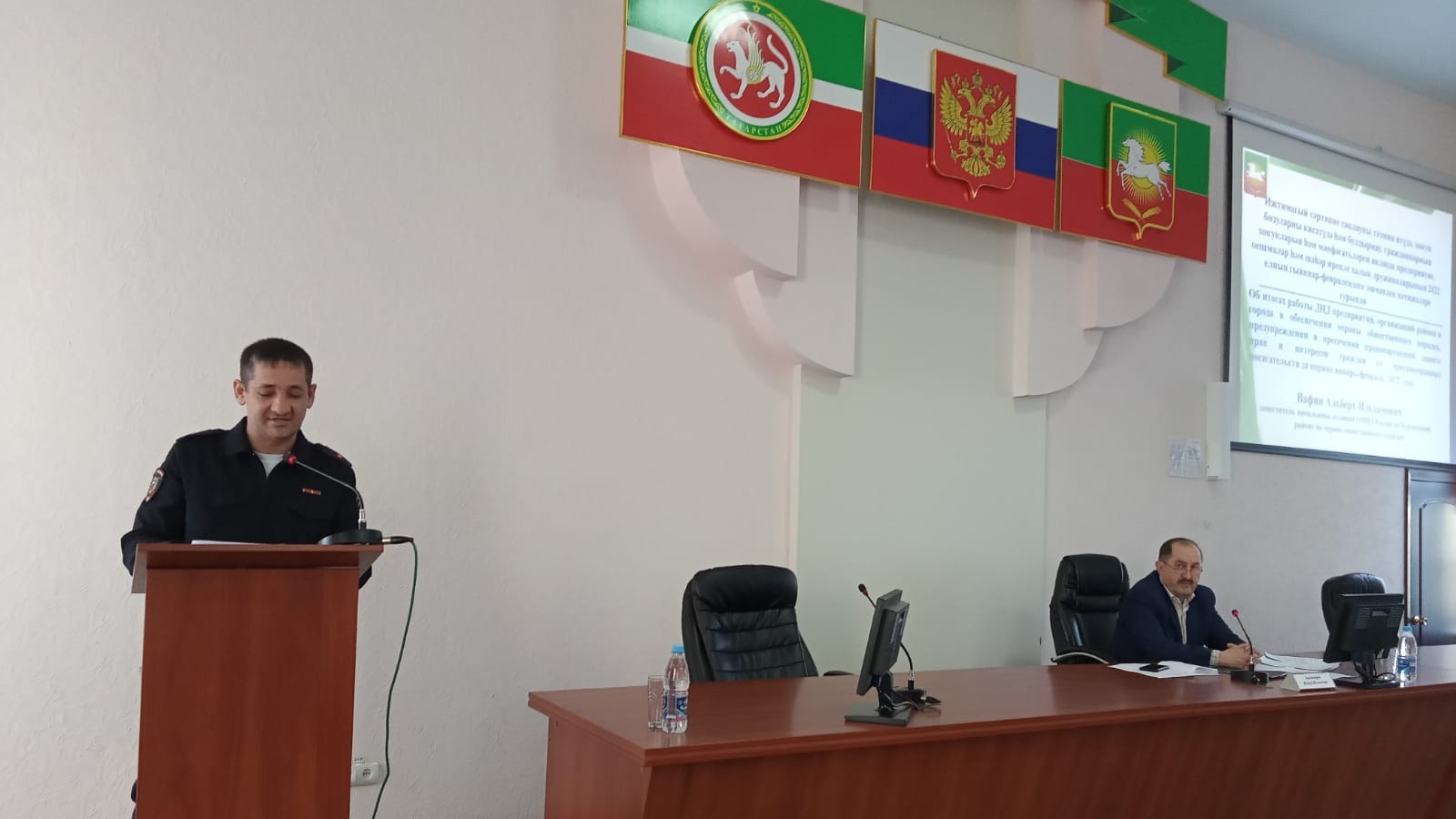 На заседании заместитель начальника полиции отдела МВД России по Нурлатскому району по охране общественного порядка Альберт Вафин отчитался по итогам работы ДНД предприятий и организаций района и города в обеспечении охраны общественного порядка, предупреждении и пресечении правонарушений, защите прав и интересов граждан от противоправных посягательств за январь-февраль 2022 года.