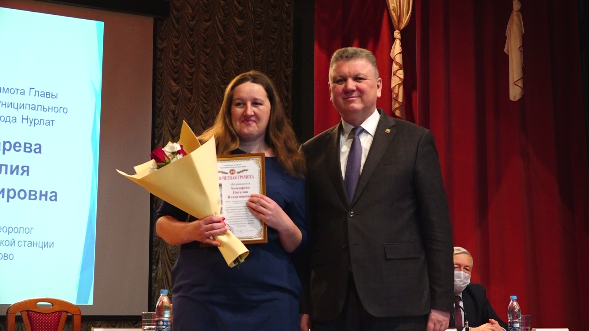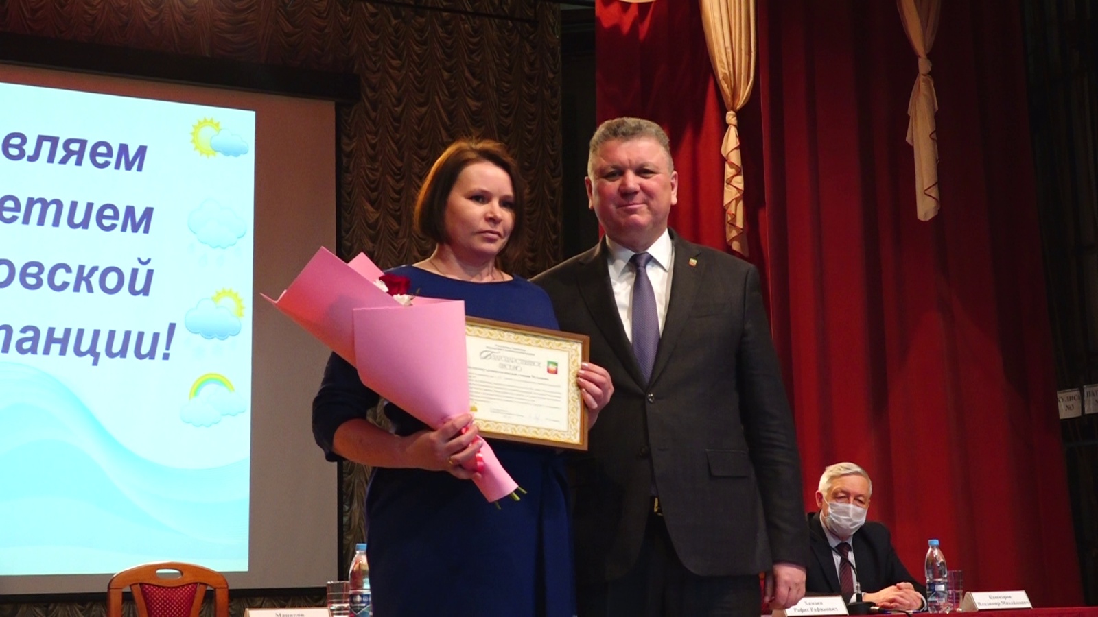 В связи с 125-летием Чулпановской метеостанции глава Нурлатского муниципального района Алмаз Ахметшин наградил Благодарственным письмом начальника метеорологической станции Чулпаново Наталию Клочкову, почетными грамотами – техника-метеоролога Наталию Бондареву и агрометеоролога Александра Матвеева.