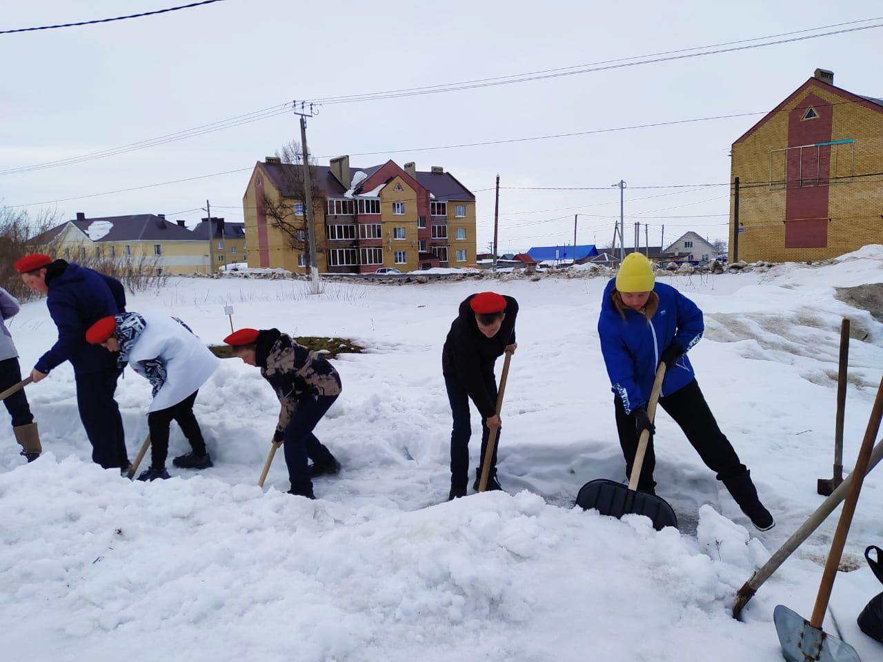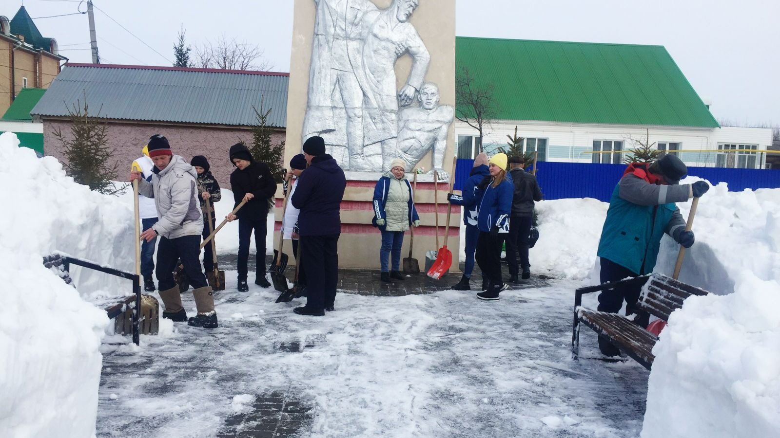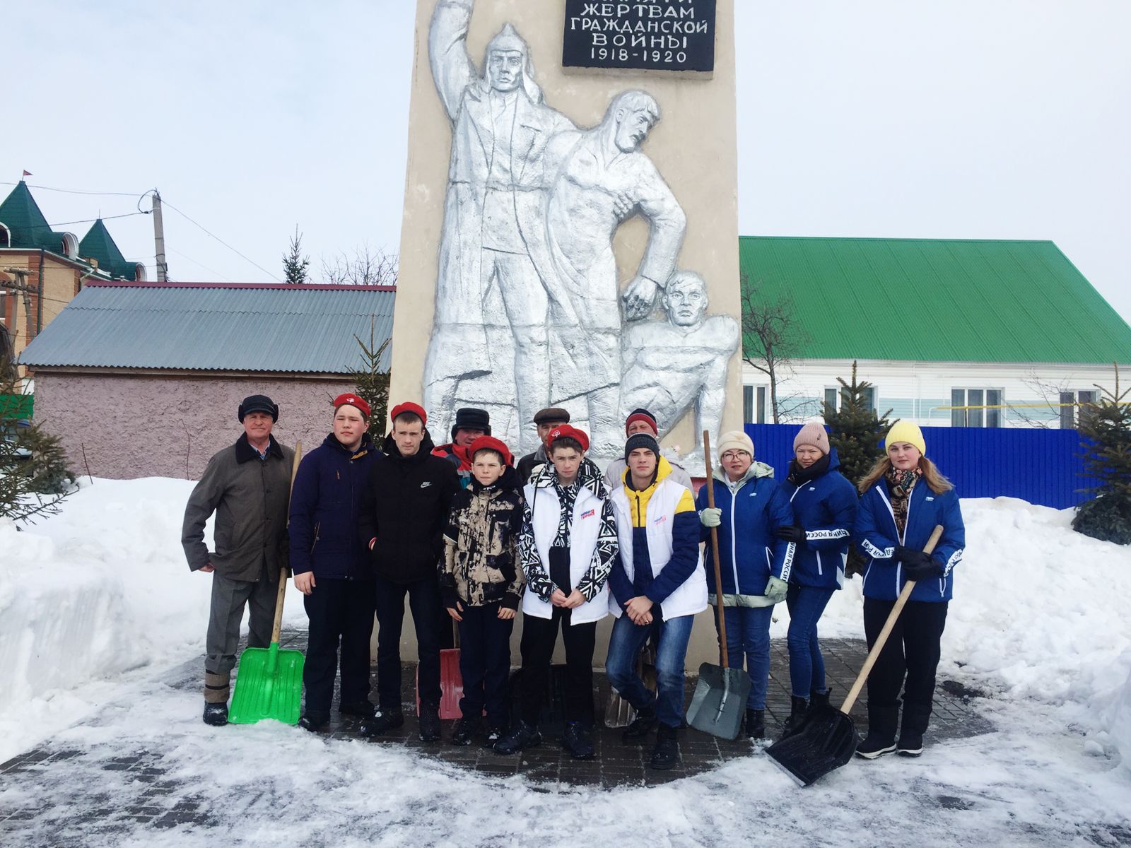 В первом субботнике приняли активное участие специалисты исполкома партии. представители первичных отделений «Микрорайон Московский», «Микрорайон Сахарный завод, члены «Молодой Гвардии Единой России», учащиеся школы №8, а также ТОС «Железнодорожников». Совместными усилиями они полностью очистили территорию памятника от снега, раскидали снег вдоль забора.