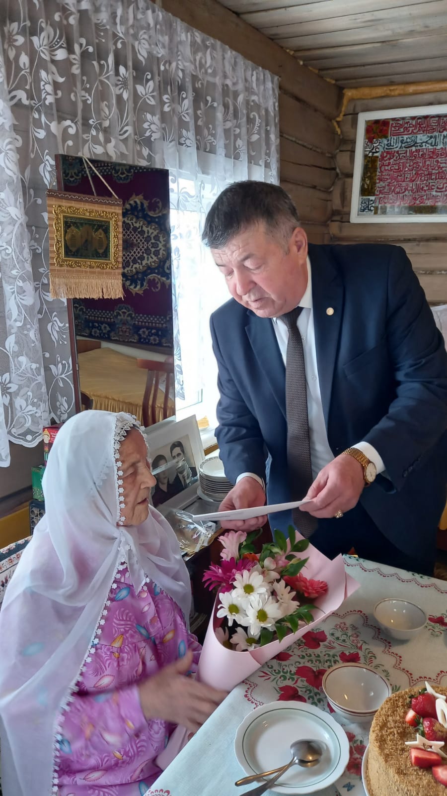 Жительница села Курманаево Зайтуня Самигулловна Ахметова принимает в эти дни многочисленные поздравления в связи с 90-летним юбилеем. Поздравительную открытку Президента РФ Владимира Путина, а также пожелания и подарки от имени главы района передал труженице тыла руководитель исполнительного комитета Нурлатского муниципального района Рафис Хамзин. С теплыми пожеланиями он поблагодарил Зайтуню Самигулловну за самоотверженный труд в годы Великой Отечественной войны.