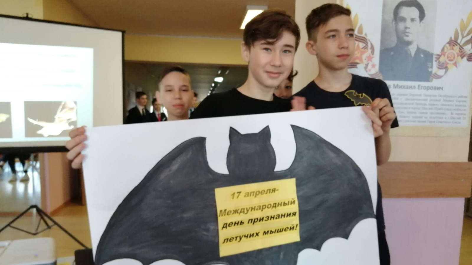 Одна из таких, к примеру, прошла на днях, ее приурочили к Дню признания летучих мышей, который отмечался 16 апреля. Гимназисты приготовили фигурки летучих мышей из бумаги, раздавали их на входе с самого утра. Также они приготовили информационную стенгазету, на которой подробно рассказали об этих животных, среде их обитания и др.