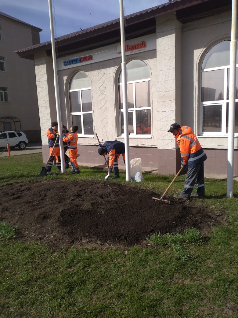 Вооружившись необходимым инвентарем, они очистили территорию от мусора, расчистили газон и подготовили клумбы.