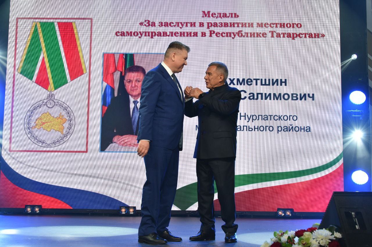 Президент Республики Татарстан Рустам Минниханов вручил наиболее отличившимся государственные награды за трудовые заслуги. Среди обладателей высокой награды и глава Нурлатского муниципального района и г. Нурлат Алмаз Ахметшин. Президент Республики вручил ему медаль "За заслуги в развитии местного самоуправления" за многолетний добросовестный труд и вклад в повышение эффективности деятельности органов местного самоуправления.