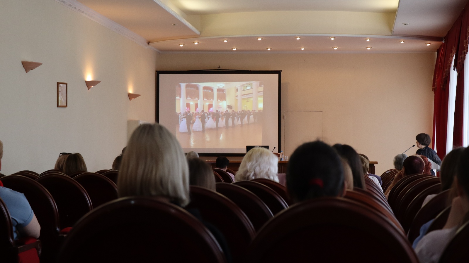 Римма Гареевна в подробностях рассказавала об истории и развитии бальных танцев. Зрители мысленно участвовали на балах, которые параллельно демонстрировались на видеопроекторе. Римма Карымова также рассказала о менуэте, полонезе, вальсе, современных танцах.
